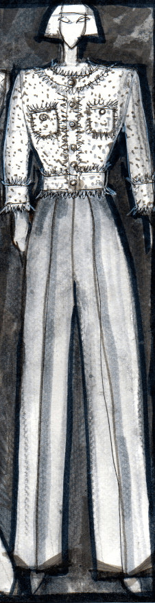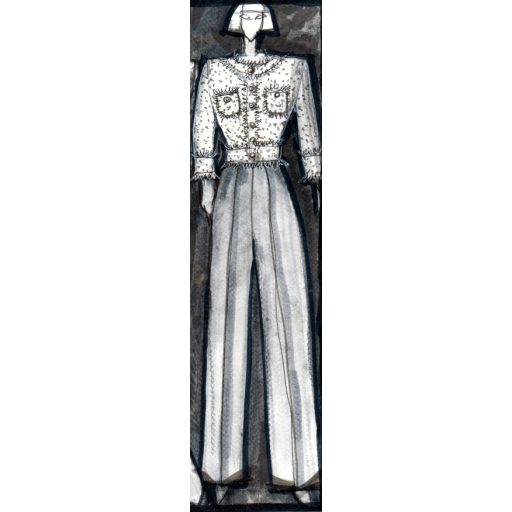 Ez az elegáns tweed / Chanel stílusú dzseki és a hozzá illő szövet nadrág a klasszikus francia stílus és a modern nőiesség kifinomult találkozása. A gazdagon díszített tweed dzseki finom textúrája és karakteres részletei harmonikusan egészítik ki a letisztult szabású nadrágot, így tökéletes választás elegáns eseményekre, üzleti megjelenéshez vagy különleges alkalmakra.