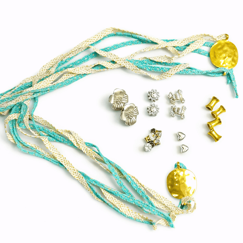 Türkiz fűző és charm díszítés – Makány Márta sneakers (cipő nélkül)